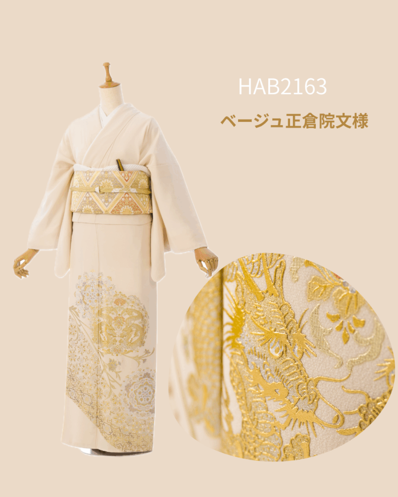 やわらかく落ち着いたベージュ地に、格調高い正倉院文様が織込まれた気品ある色留袖。
