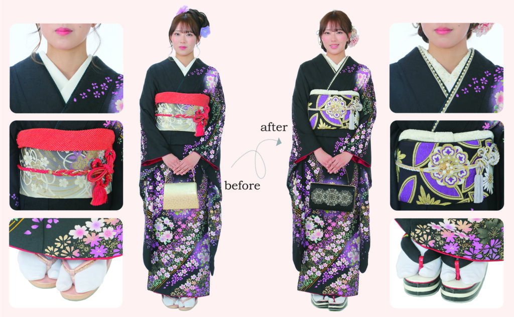 ママ振袖のBefore Afterコーディネート例